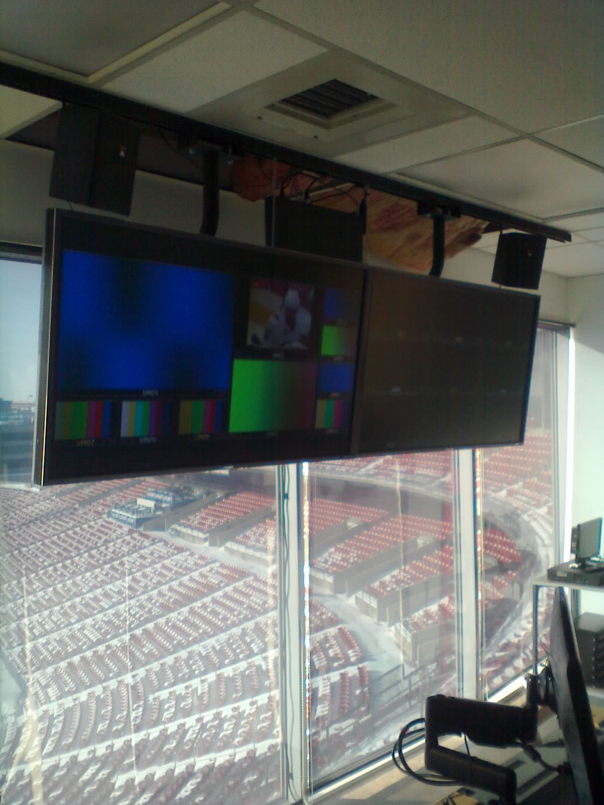 Plans for the Bisons to broadcast in HD are getting closer as Opening Day nears. Here is a pictorial from the mini-tour through the control room at Coca-Cola Field. Not only will this room serve the Bisons’ broadcasts on Time Warner Cable SportsNet and SNY, it will be the nerve center for the largest HD board in Minor League Baseball. Wide range of images below – from the new, old and random stuff. You can click-the-pic to get a bigger view.